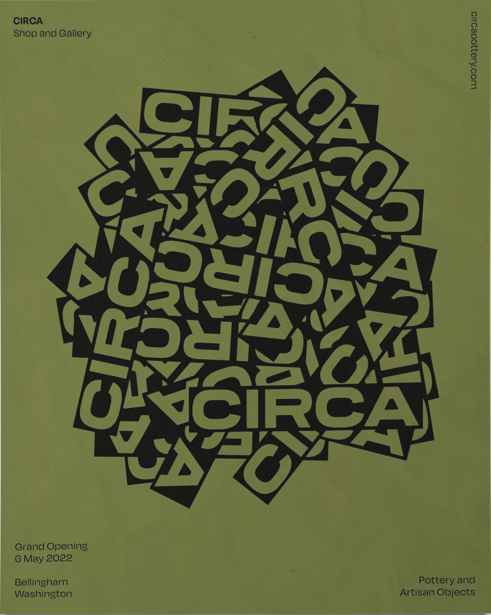 A series of five designs created and printed to promote the grand opening of the Circa Pottery Shop and Gallery. Letterpress printed, 2022.